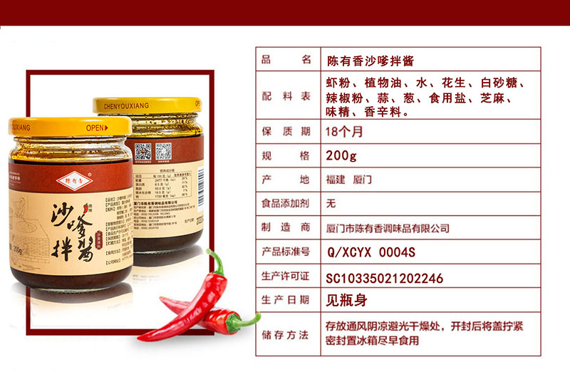 陈有香辣椒酱1.3KG拌饭酱香辣酱厦门特产火锅底料调味品单瓶包邮