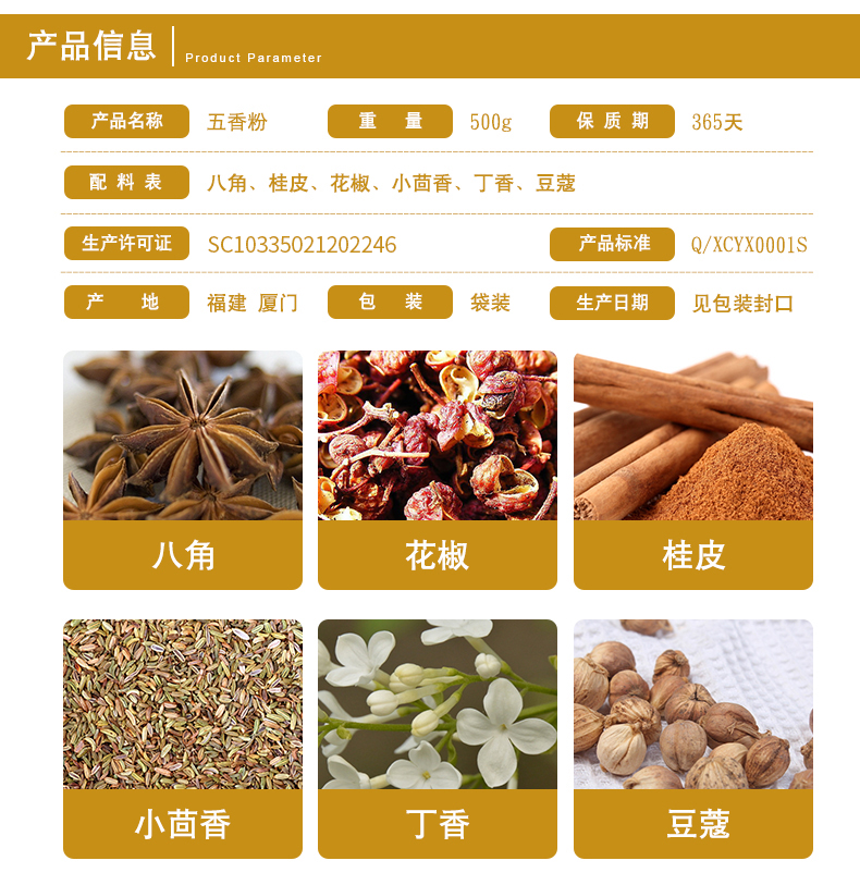 陈有香五香粉500g 厨房佐料炒菜卤料凉拌烧烤炒菜香料调味料