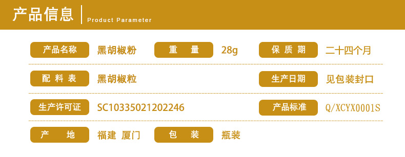 陈有香纯黑胡椒粉30g西餐牛排意面烹饪调料烧烤烘焙汤面料 调味粉