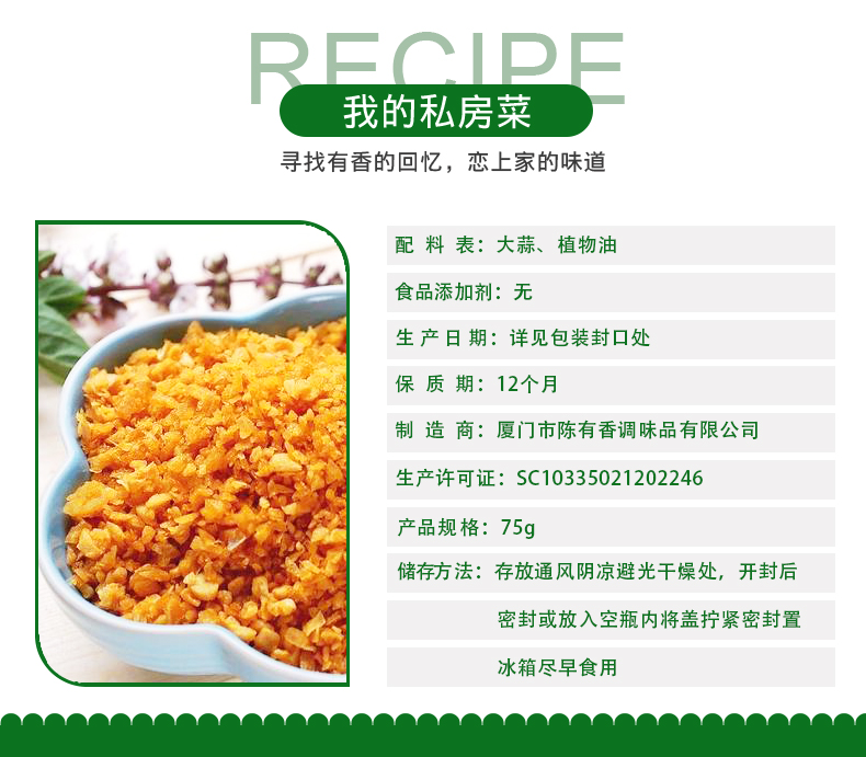 陈有香 油炸蒜酥75g 蒜蓉蒜头蒜干酥面调味料厨房餐馆香料袋装