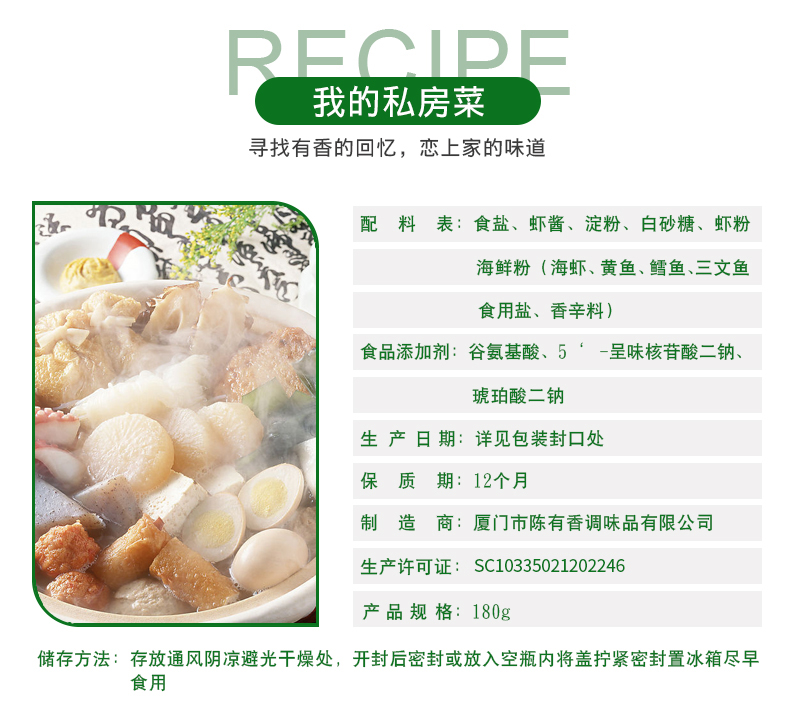陈有香海鲜调味料180g*2包饺子馅厦门泡面料厨房炒菜烧烤