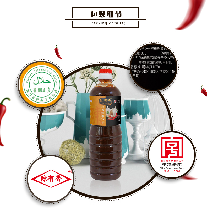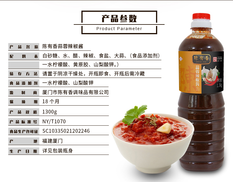 陈有香瓶装1.3KG火锅调料蒜蓉辣椒酱厦门火锅底料搭档火锅蘸料