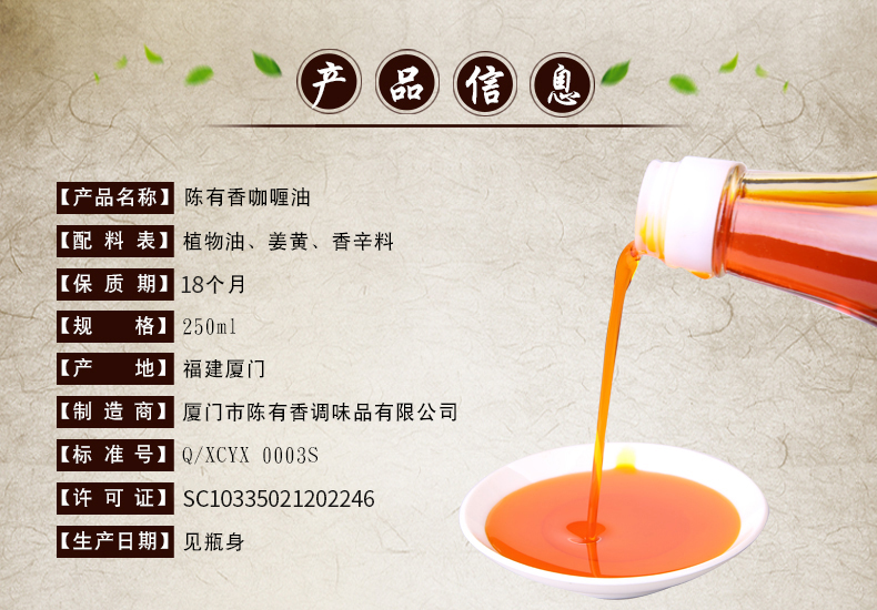 陈有香咖喱油250ml咖喱鸡拌饭凉拌蘸食炒菜无碘油 调味油3瓶包邮